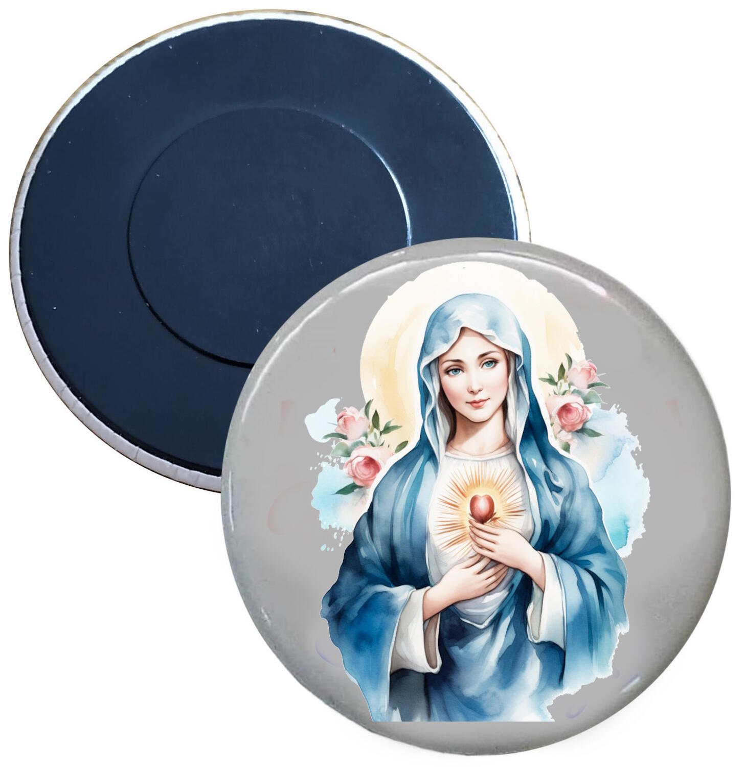 Benvenuti! Con gioia vi presento questa splendida calamita tonda che celebra la figura venerata della Madonna Beata Vergine Maria.